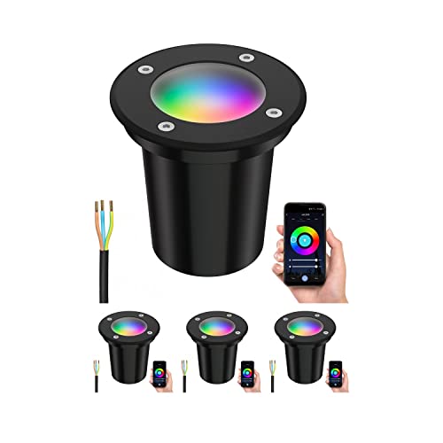 Ledscom.de Luce da terra per esterni BOLI per esterni, IP67, nero, smerigliato, rotondo, 108mm Ø incl. lampada LED RGB, smart 473lm ciascuno, 4 pz.