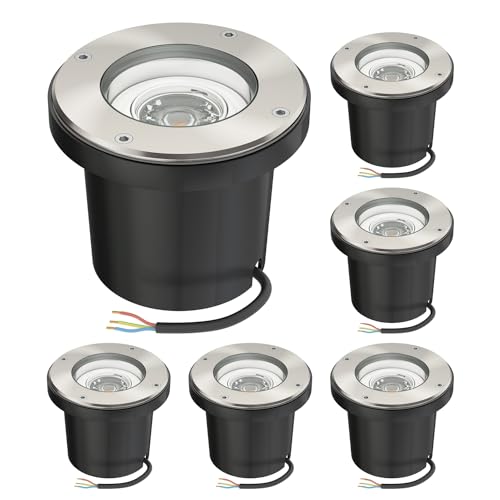 Ledscom.de 6 pezzi lampada da incasso a pavimento BOFU per esterni orientabile in acciaio inox rotonda IP67 150mm Ø incl. lampada LED 5.558W 535lm 30° bianco