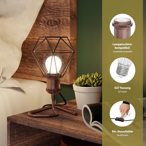 [Collegamento tramite cavo da 1,5 m e spina di rete] - Grazie al cavo di rete con spina, la lampada da tavolo può essere facilmente collegata a qualsiasi presa di corrente. Ciò consente una rapida installazione, un risparmio di tempo e allo stesso tempo una maggiore flessibilità, in quanto la base della lampada con presa E27 può essere facilmente spostata in un altro luogo grazie alle sue dimensioni.