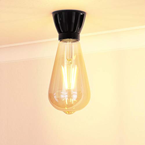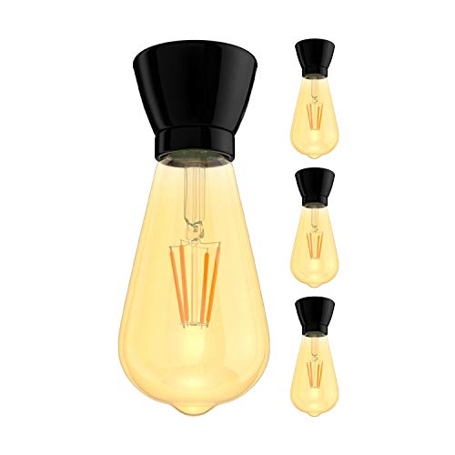 Ledscom.de Presa a soffitto E27 in porcellana MINZ, rotonda, nera, incl. lampada E27 retro oro 3,83W bianco extra-caldo ogni 489lm, 4pcs.
