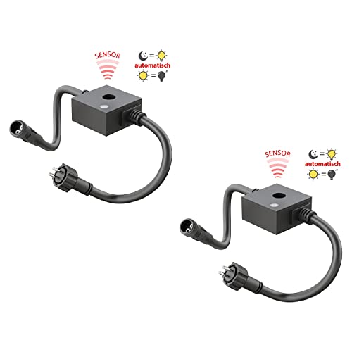 Ledscom.de Sensore crepuscolare per esterni, sistema a innesto IP44 NEMO, nero, sensore di luminosità, interruttore giorno/notte, 2 pezzi.