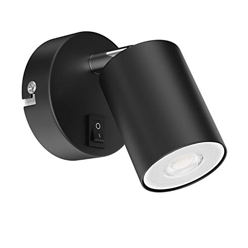 Ledscom.de Spot da parete WAIKA, luce singola, con interruttore, GU10, nero opaco, incl. lampada LED GU10 468lm, bianco caldo