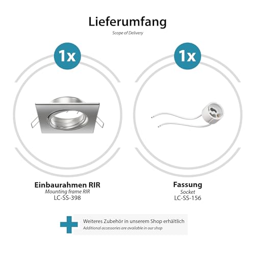 Ledscom.de Telaio di montaggio a soffitto RIR Telaio di montaggio cromato opaco angolare girevole (LED/Halogen/GU10/MR16/PAR16/50mm) incl. presa GU10