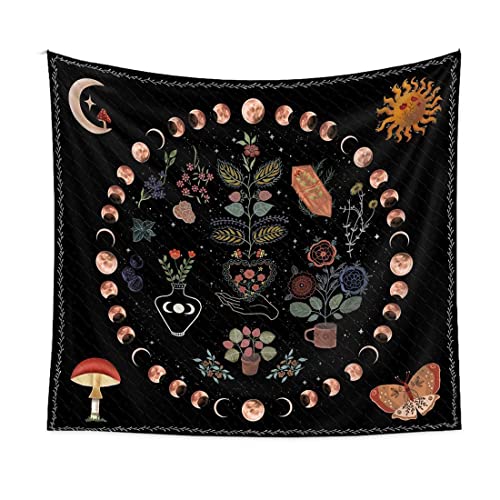 【Design raffinato】 Questo arazzo utilizza elementi come il sole, la luna, i fiori, l'erba, le farfalle, i funghi, ecc. Mostra la durezza e la grandezza della vita, rendendo la tua casa più fresca e calda.