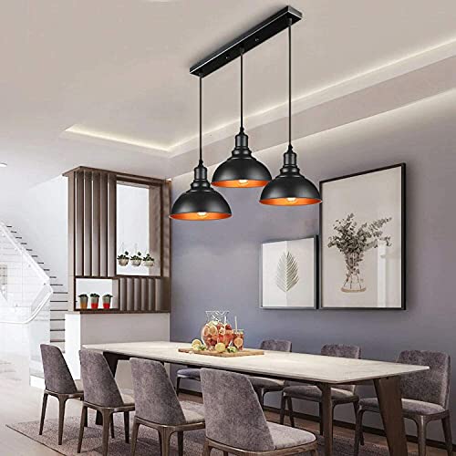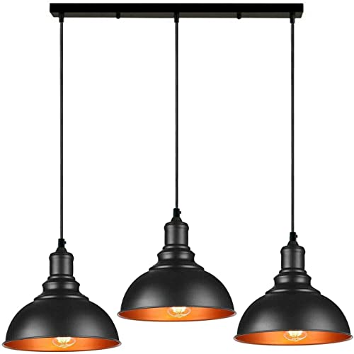 LEDSone Lampadario a sospensione a 3 teste moderno vintage industriale retrò metallo ferro paralume a sospensione (tipo 1)