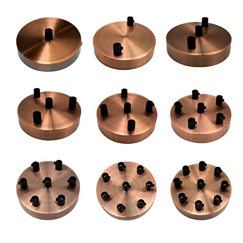 LEDSone Rosone da soffitto a 9 uscite, colore rame, perfetto per cavo flessibile in tessuto, 120 mm, piastra di montaggio in metallo con accessori per lampada da soffitto e da parete (9 uscite)