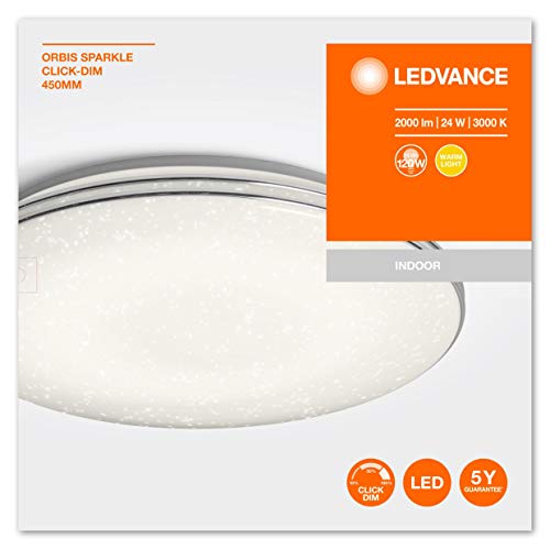 LEDVANCE Apparecchio LED da Parete e Soffitto, Apparecchio per Interni, DImmerabile tramite Interruttore, Bianco Caldo, 450.0 mm x 91,0 mm, Orbis Sparkle