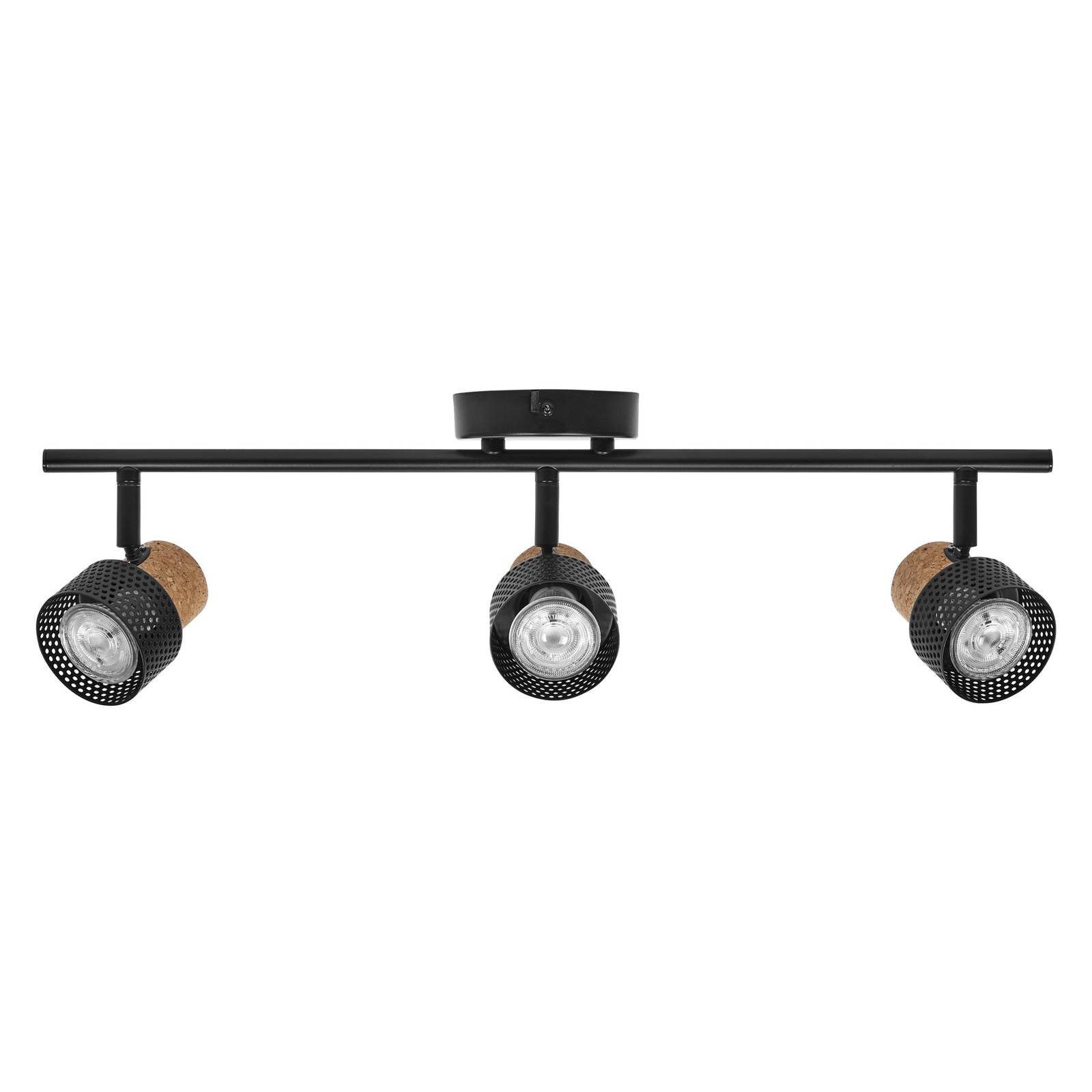 Faretto da soffitto a 3 luci Cork con sorgenti luminose dimmerabili GU10 Il lungo faretto da soffitto Cork è presentato in una splendida combinazione di materiali. Mentre la struttura, compreso il rosone rotondo e i paralumi perforati, è in acciaio con finitura opaca, le parti posteriori del faretto sono rivestite in sughero. Il faretto viene fornito con una sorgente luminosa GU10 dimmerabile e i faretti possono essere ruotati e orientati. È ideale per l'uso in interni, ad esempio in corridoi e disimpegni, aree d'ingresso, soggiorni, cucine e molto altro ancora - versatile, personalizzabile e durevole grazie alle lampade LED sostituibili - alloggiamento di alta qualità con finitura opaca - lampade OSRAM dimmerabili incluse - facile installazione - accessori di montaggio e collegamento completi inclusi