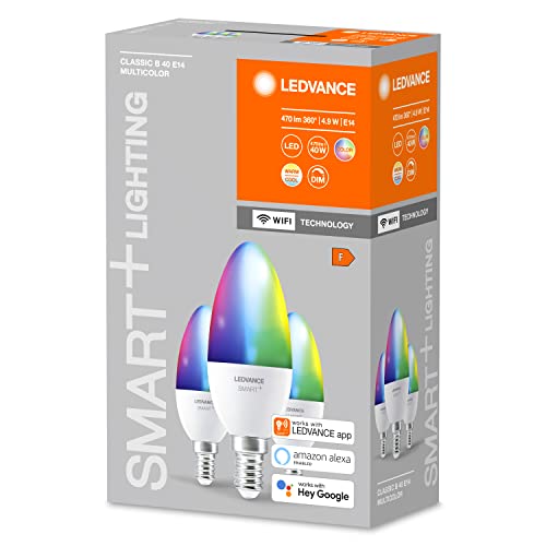 LEDVANCE Lampada LED intelligente con tecnologia WiFi, attacco E14, colore della luce modificabile (2700-6500K), colori RGB modificabili, sostituzione per 40W, SMART+ WiFi, confezione da 3
