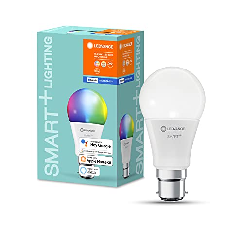 LEDVANCE Lampada LED Smart+, tecnologia Bluetooth, B22d, colore della luce variabile, colori RGB modificabili, sostituisce lampadine da 60 W, controllabili con Alexa, Google e Apple, confezione da 4