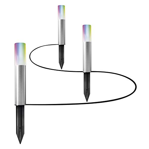LEDVANCE Luce da giardino a LED intelligente con tecnologia WiFi, pacchetto di estensione con 3 pali da giardino a LED per esterno, colori RGB modificabili, compatibile con Google e Alexa, SMART+
