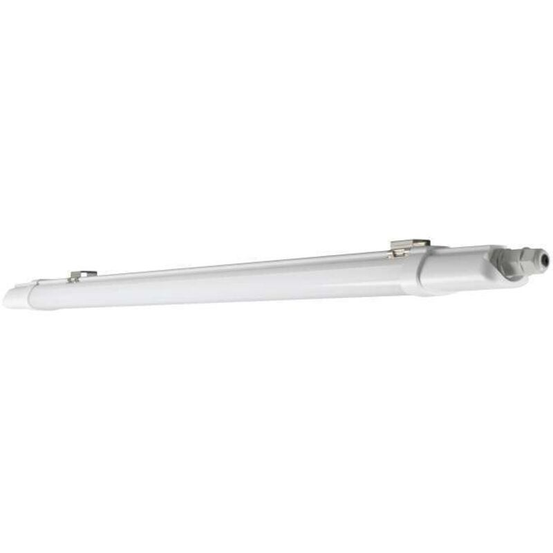 Plafoniera lineare LEDVANCE Slim a tenuta stagna da 120 cm e un tubo LED T8 con 18W di potenza, con eccellenti prestazioni d'illuminazione e impermeabilità. Grazie ai suoi materiali e al suo design con grado di protezione IP65, è un prodotto resistente all'acqua, alla polvere e ad altri agenti esterni, ideale per l'installazione in ambienti umidi o esterni.