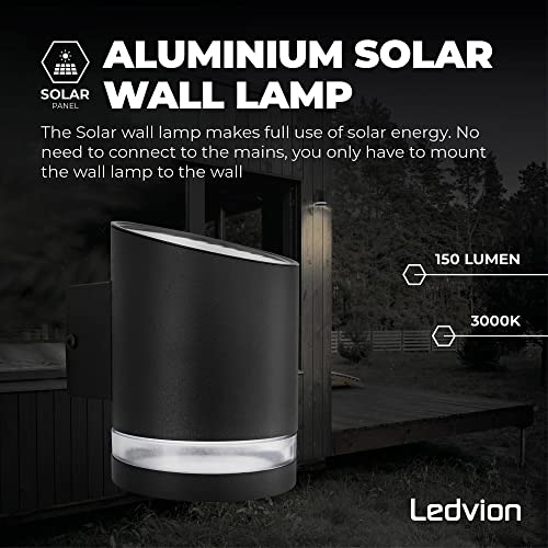 Ledvion Elara, Lampada da Parete Solare, Nero, Interni ed Esterni, Lampada Impermeabile, 3000K, 150 Lumen, Luce Ricaricabile
