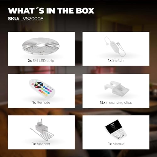 Illuminazione Plug & Play: questa striscia LED dimmerabile da 10 metri è facile da installare e può essere regolata in luminosità e temperatura del colore (3000K-6500K) utilizzando il telecomando in dotazione.