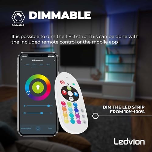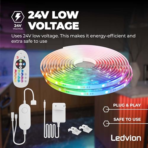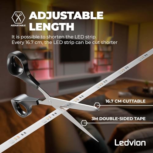Ledvion Striscia LED intelligente, dimmerabile, RGB + CCT, 3000 K fino a 6500 K, 24 V, 19 W, 10 m, Plug & Play, controllo con app, facile da accorciare, Tuya, Google Home o Alexa, striscia LED