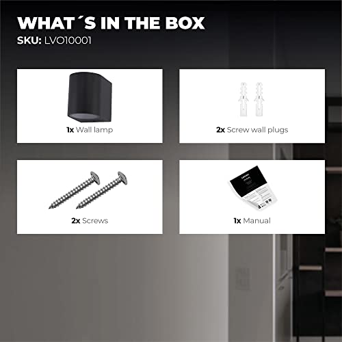 Ledvion Vesta, Lampada da parete a LED per esterni Rotonda Nera, Per uno GU10 Down, Lampada da parete per esterni, Lampada da parete, Lampada per esterni, IP54