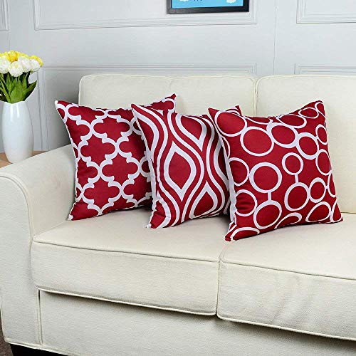 Leedy, Federe copricuscino alla moda con cerniera invisibile,decorazione per la casa, per soggiorno, divano, auto, camera da letto, 45,7 x 45,7 cm, set da 6 pezzi, Cotone lino, Red, medium
