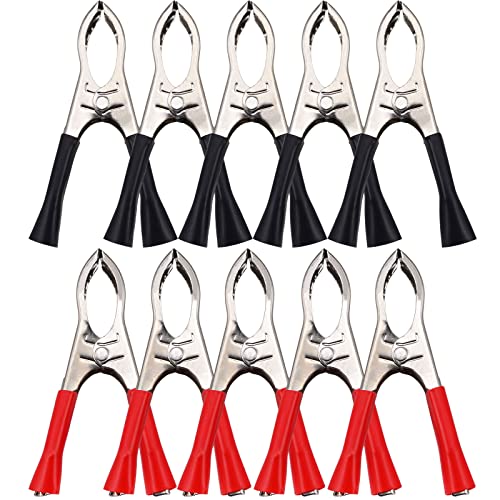 Leehitech 35A Morsetti a Coccodrillo per Test Batteria, Manico in Plastica Isolato Clip Placcate in Nichel Nero Rosso, Terminali Elettrici per Auto Tester per Circuito di Test Elettrico 10 Pezzi