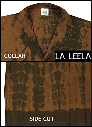 LA LEELA Pulsante Uomini Giù Camicia Spiaggia Breve Tasca Frontale Manicotto Collare vestibilità Regolare Camicia Hawaiana Marrone_AA22 S | Fits 104cm - 107cm