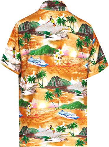 LA LEELA Uomini Aloha Party in Piscina Lato Pulsante Camicia Hawaiana Giù Manica Corta Tasca Frontale Funky Arancione_AA357 L