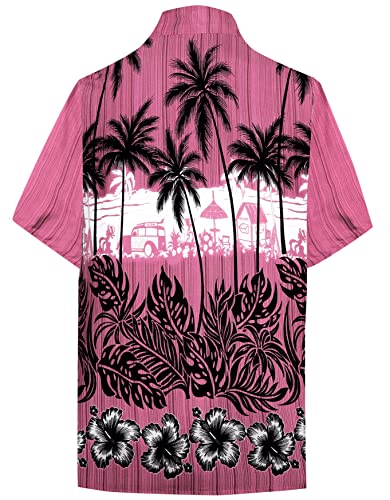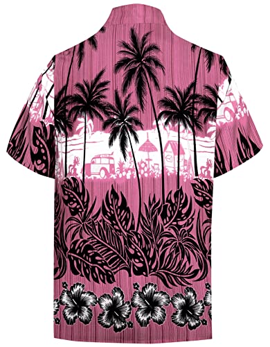 LA LEELA Uomini Rilassato Fit Hawaiian Pulsante Manica Corta Aloha gi� Hawaiano XL Camicia Rosa