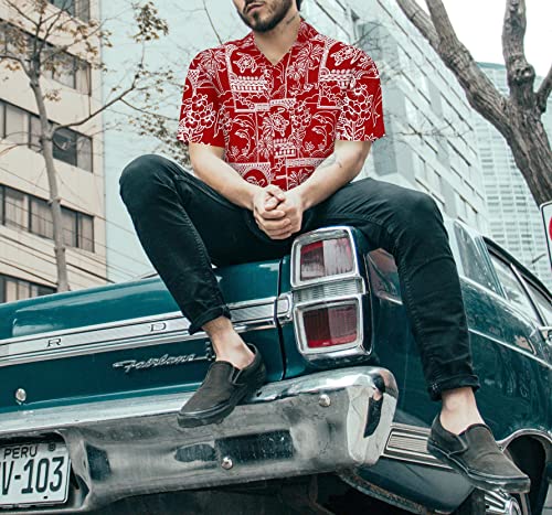 LA LEELA Uomo Camicia Estiva da Campo Hawaiano Tropicale Spiaggia Scarlatto, Aloha Collage XXL