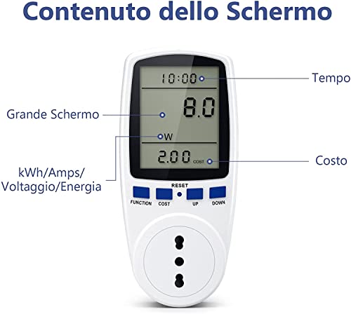 Display LCD, WHz, tempo, costo, visualizzato simultaneamente, completo e chiaro.