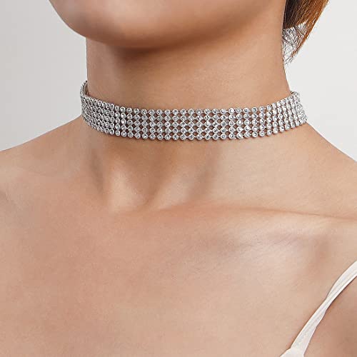 LEEQBCR 1pcs Larga collana girocollo a strati di diamanti sintetici, in argento, a catena da tennis, corta, brillante, per donne e ragazze