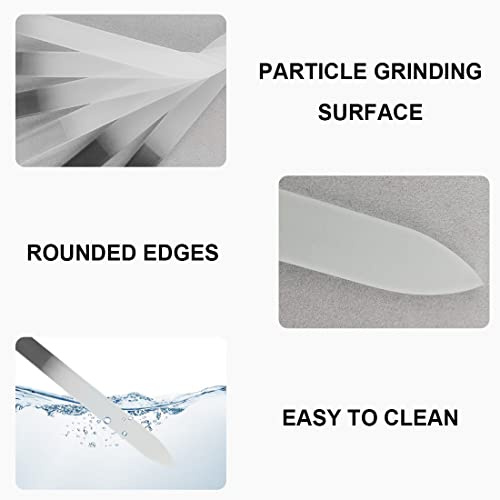 QUALITÀ ECCELLENTE: queste lime per unghie in vetro sono realizzate in vetro temperato di alta qualità e utilizzano la tecnologia di incisione su entrambi i lati per garantire che le unghie non si scheggino o si indeboliscano. Il vetro è forte e resistente all'usura e può mantenere l'integrità della superficie della lima dopo un uso ripetuto.