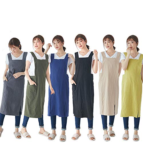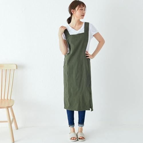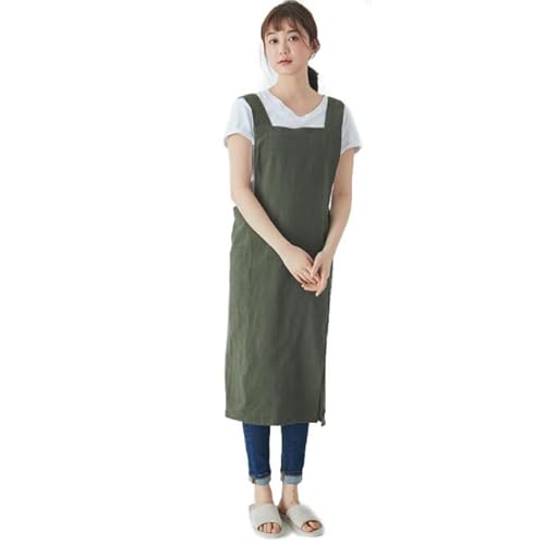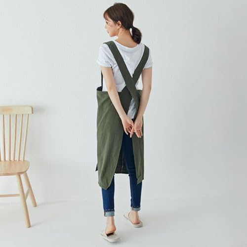 LeerKing Grembiule da Donna Cotone Giapponese e Lino Croce Retro Bavaglini con Tasche per Cucinare e Barbecue Giardinaggio Tempo Libero Artigianato Floreali,Verde 90CM