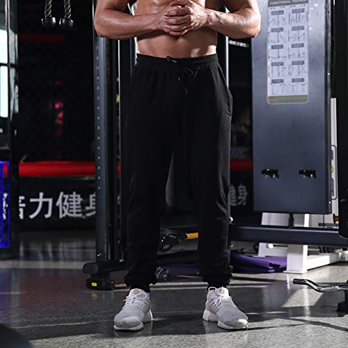 LeerKing Pantaloni Sportivi Uomo Slim Fit i Pantaloni Tuta Ragazzo Uomo Estivi Magro Traspirante Jogger Casual Pantaloni Palestra con Running Ciclismo Fitness, Nero, Taglia 2XL