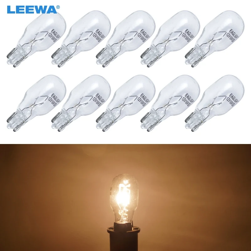 LEEWA 10pcs Warm White Car T15 Wedge 12V 16W Halogen Bulb External Halogen Lamp Replacement Dashboard Bulb Light #CA1310