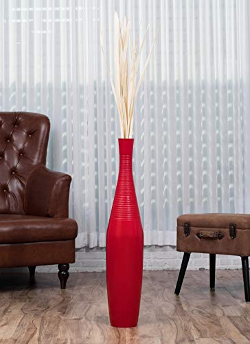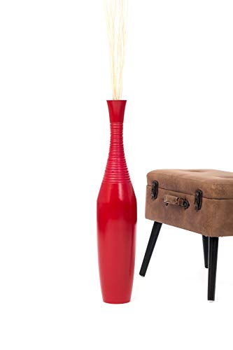 Leewadee grande vaso da terra: vaso alto, elemento decorativo fatto a mano in legno di mango, vaso per rami decorativi, 90 cm, rosso