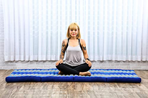LEEWADEE materassino pieghevole, standard: tappeto medio pieghevole in kapok fatto a mano, materasso per il pavimento, 200 x 70 cm, blu