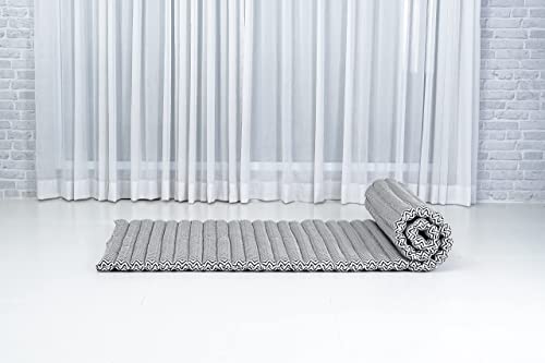 LEEWADEE Roll-Up Thai Mattress, 200x76x5 cm, Guest Bed Yoga Floor Mat Thai Massage Pad Eco-Friendly Organic And Natural, Kapok, Black White