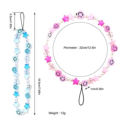 LEEWENYAN 5 PCS Donna Moda Cordino per telefono Cordino per telefono Cordino per telefono Cinturino da polso-Perline colorate Fascino per telefono-Smiley Stella Perla Decorazione in rilievo Accessori