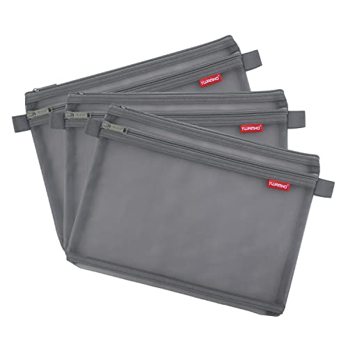 Lefancy B5 - Cartella portadocumenti con chiusura lampo con zip, in nylon trasparente, per ufficio, 3 pezzi, grigio