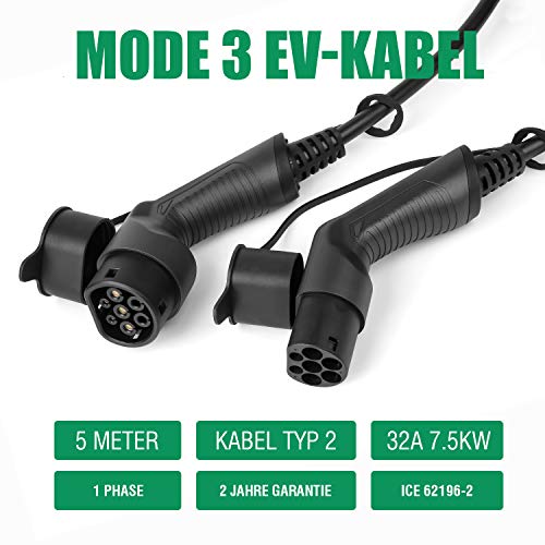 LEFANEV Cavo di Ricarica per Veicoli elettrici (EV Charger Cable), per Caricatore EV Tipo 2 (IEC 62196-2) a Tipo 2 (IEC 62196-2) (Tipo 2 to Tipo 2, 32A/MONOFASE)