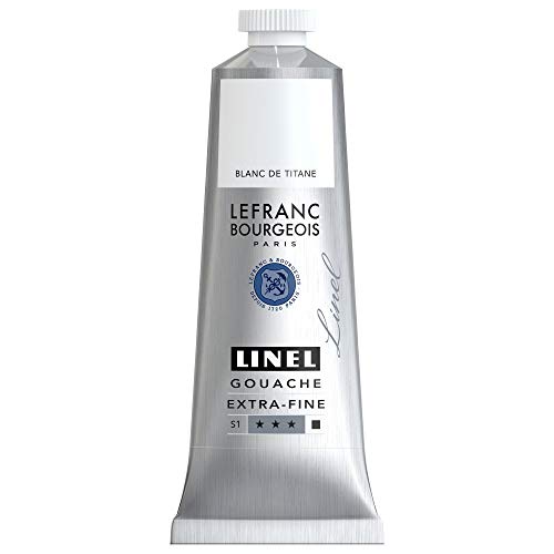 Lefranc Bourgeois 301238 Linel Gouache - Acquerelli extra fini e lisci con massima intensità di colore, luminosità per un'applicazione senza striature, tubo da 60 ml - Bianco Di Titanio