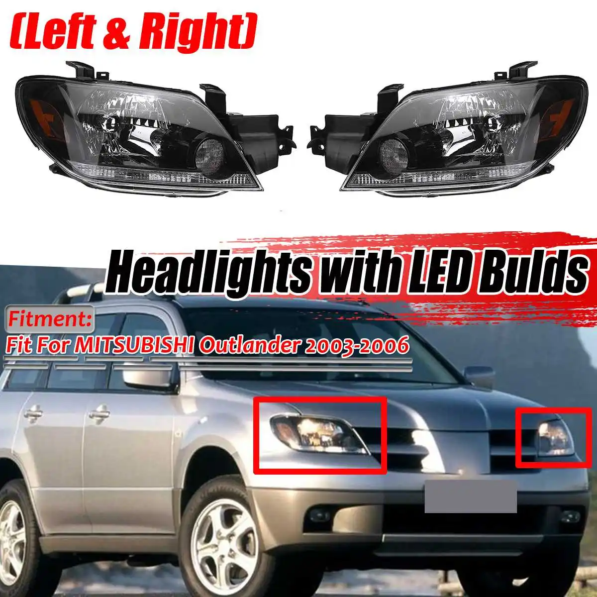 Left+Right Car Front Headlight Head Lamps Lights Assembly With Bulb For MITSUBISHI For Outlander 2003 2004 2005 2006