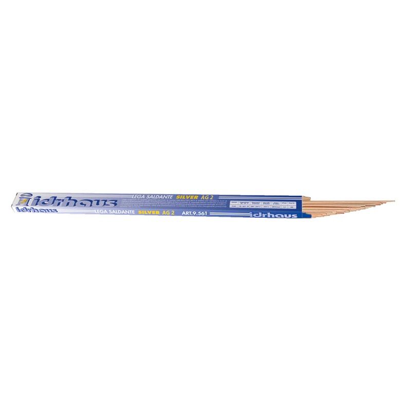 Caratteristiche tecniche: - temp. di fusione: 650 - 810 °C - intervallo di fusione: 710 °C - carico di rottura: 250 N/mm2 - lega quadra: 2 - lunghezza: 500 mm - peso: 1000 g - Composizione %: Cu 91,8 - P 6,2 - Ag 2