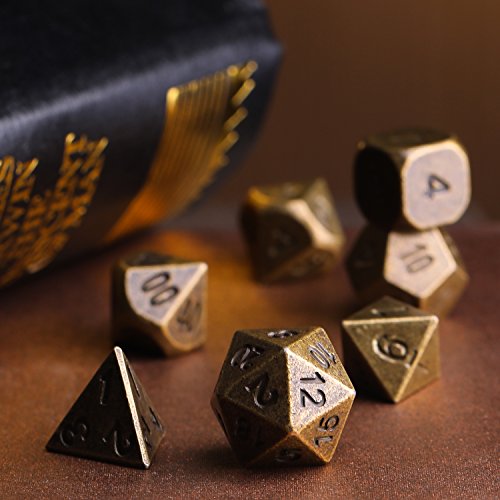 Lega di zinco Dadi Metallo Poliedrici 7-Die Dice Set per Dungeons and Dragons RPG Gioco dei Dadi D&D Insegnamento della Matematica, d20, d12, 2 Pezzi d10 (00-90 e 0-9), d8, d6 e d4 (Bronzo Antico)