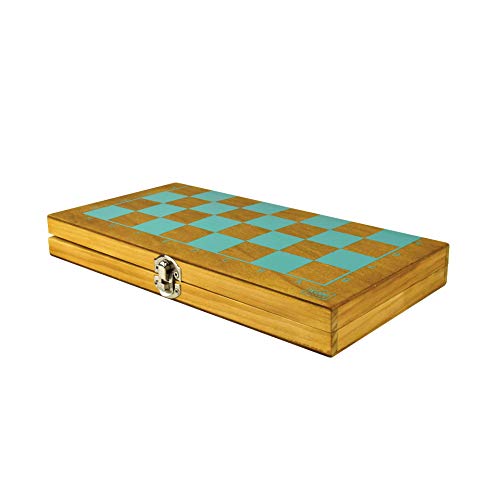 Include: 1 scacchiera pieghevole, 16+16 pezzi di scacchi, 12+12 pedine, regole del gioco.