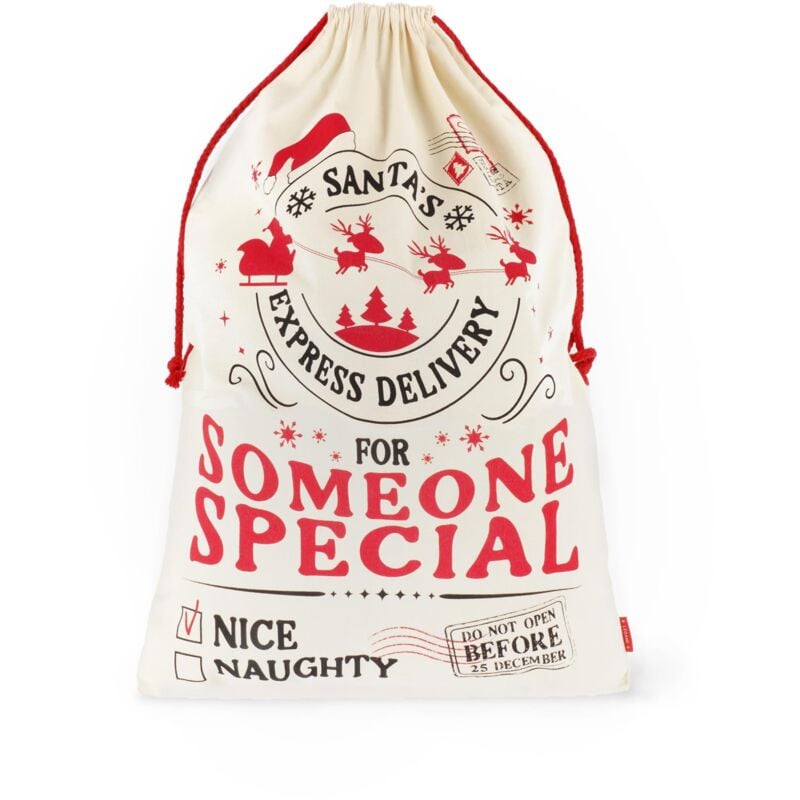 Descrizione Ti auguriamo di trovare sotto l'albero un sacco di regali. Letteralmente: il Sacco per Regali di Babbo Natale Santa's Coming to Town di Legami è super capiente, super resistente e, speriamo, super pieno! Perché scegliere un banale sacchetto quando si possono fare le cose in grande