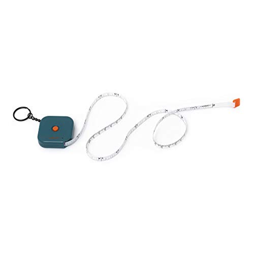 Dotato di doppia graduazione che permette di misurare sia in pollici sia in centimetri e di un bottone per far sì che il metro si arrotoli automaticamente su se stesso.