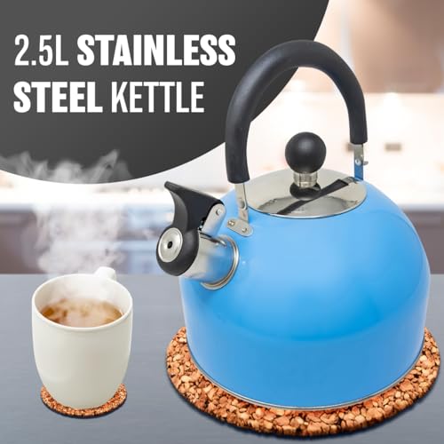 Leggero bollitore che fischia, in acciaio inox, 2,5 l, per campeggio e pesca, bollore rapido Blu