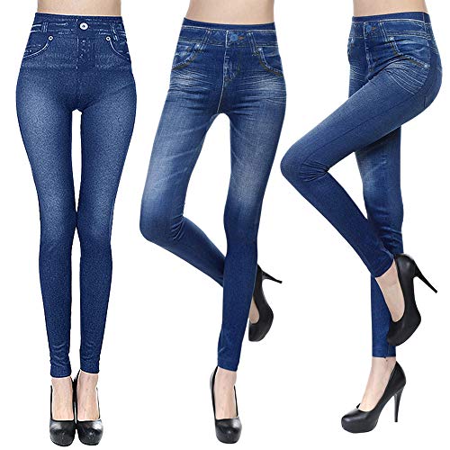 Leggings da donna in finta jeggings jeggings a vita alta in vita elastica, pantaloni attillati da donna, slim estensibili, pantaloni a matita senza cuciture, 3 blu, M