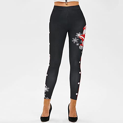 Leggings di Natale per le donne Skinny pupazzo di neve Fiocco di Neve Stampati Running Pilates Gym Pantaloni Sportivi Corsa Allenamento Yoga, Nero, S