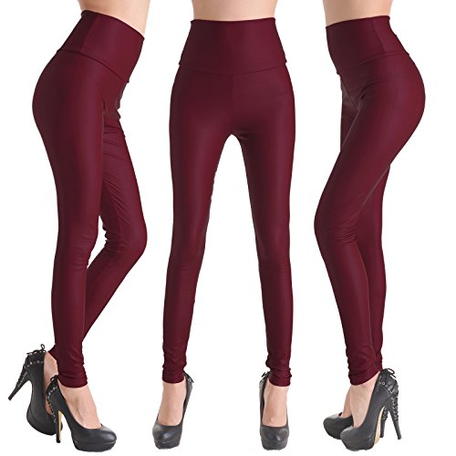 Leggings in pelle PU, a vita alta, sottile pelle sintetica vinaccia S (101 cm/57 cm/77 cm)