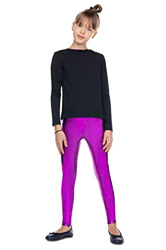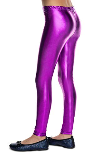 Hi!mom Leggings da ragazza in lattice lucido effetto bagnato pantaloni per bambini in pelle imitazione bambini ragazze lattice coscienze pantaloni 2-13 anni LTXK, Viola, 11-12 Anni